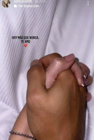 Luego de llevarles tranquilidad a sus seguidores, Kun recibió un tierno mensaje de parte de Sofía Calzetti, su novia. La joven compartió una foto sosteniendo la mano de su novio y le dedicó un conmovedor mensaje. "Hoy más que nunca, te amo", afirmó junto al emoji de corazón rojo.