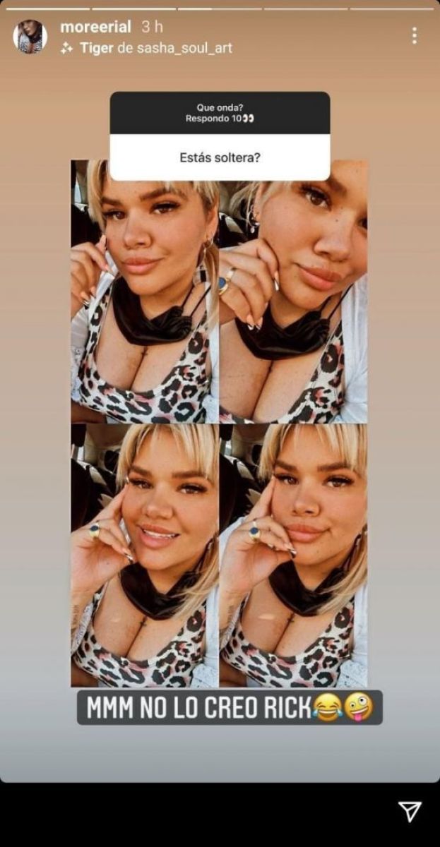 More Rial despertó muchas sospechas cuando le respondió enigmáticamente a uno de sus seguidores, quien le consultó si se encontraba soltera.