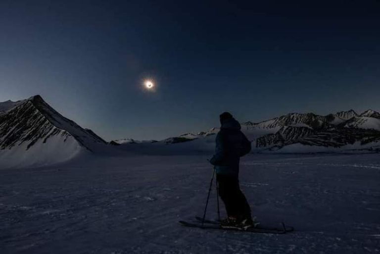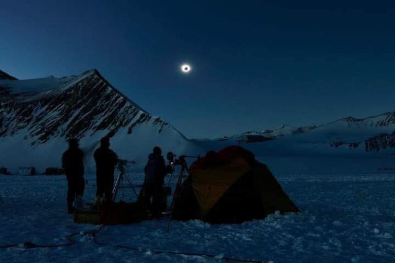 Este sábado se registró un eclipse solar total que se prolongó por espacio de dos minutos como consecuencia de la interposición de la Luna entre el Sol y la Tierra, y que se pudo apreciar en su perfección desde la Antártida.