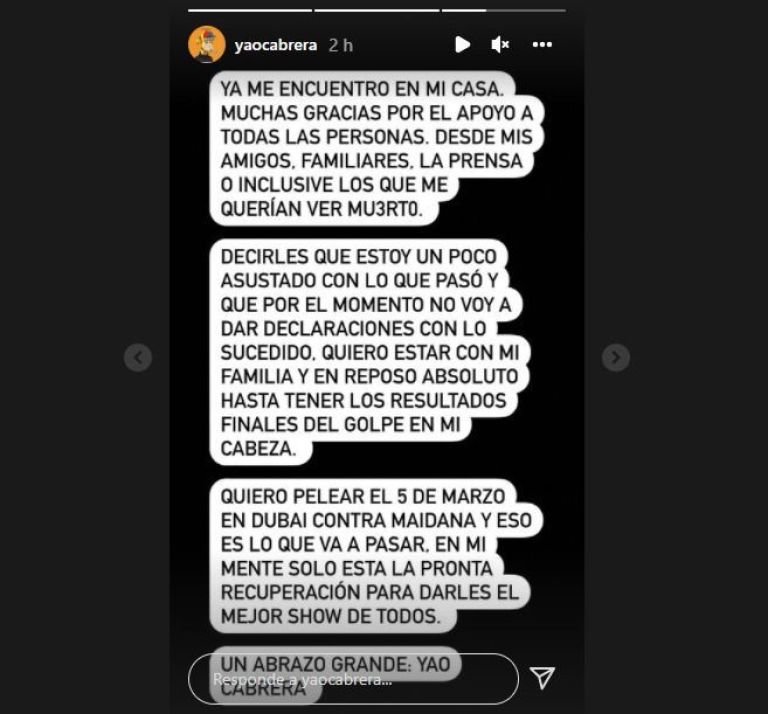 Yao Cabrera reapareció en las redes luego de su accidente