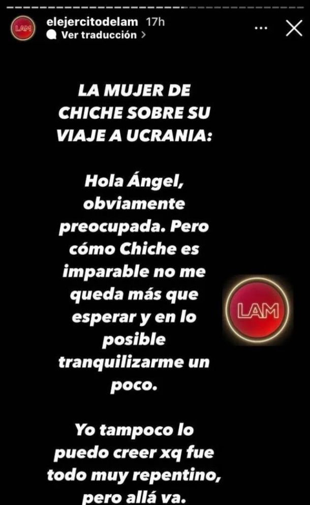 Luego de que el periodista tomara la determinación de ir a cubrir desde Ucrania el conflicto bélico con Rusia, Ángel de Brito se comunicó con Cristina Seoane, la esposa de Chiche Gelblung, y compartió sus pensamientos y preocupación a través de redes sociales.