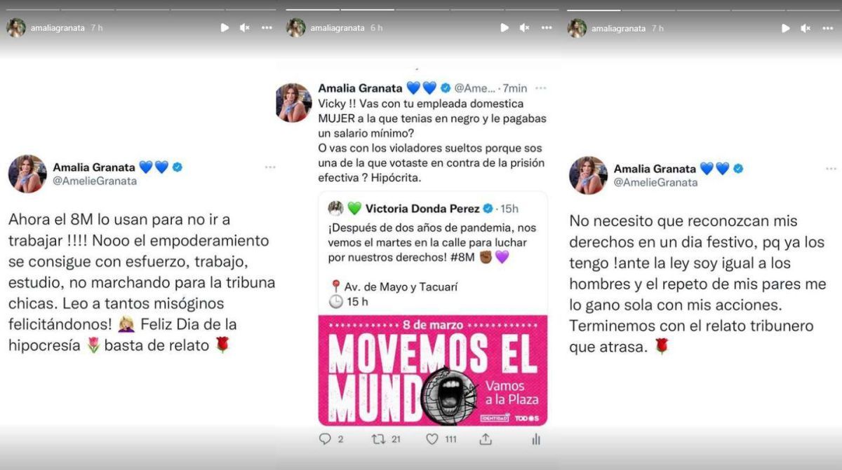 Muchas figuras del espectáculo se refirieron al Día de la Mujer y Amalia Granata no quiso quedarse afuera. Sin embargo, su mensaje en las redes fue para mostrarse en contra de la convocatoria que se lleva adelante todos los años.