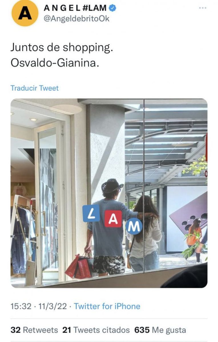 Todo parece indicar que Gianinna y Daniel Osvaldo se dieron otra oportunidad. La pareja -que confirmó su separación a fines de diciembre- fue vista, primero, durante los entrenamientos de Benjamín Agüero en el Club Atlético Tigre y luego, abrazados en un centro comercial. Fue Ángel de Brito quien dio a conocer las imágenes exclusivas donde se los puede ver juntos.