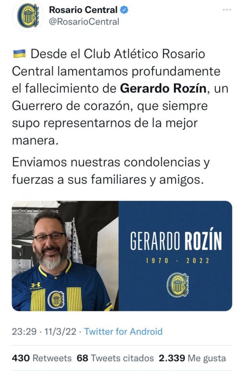 La confirmación conmocionó al mundo del espectáculo, del periodismo, el deporte y hasta la política. Lo despidieron desde el Club Atlético Rosario Central -club del que era hincha- hasta Marley, Mauro Szeta y el Presidente de la Nación, Alberto Fernández.