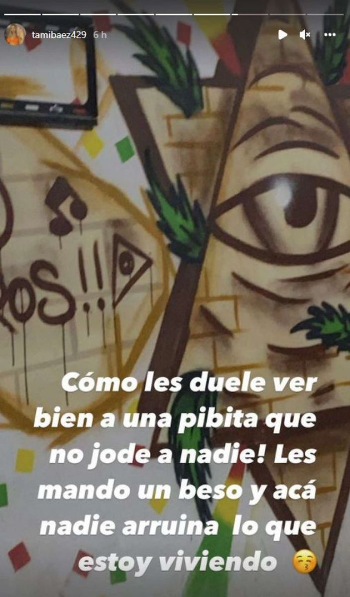 Por su parte, Báez, publicó otra historia y con un mensaje contundente. "¡Cómo les duele ver bien a una pibita que no jode a nadie! Les mando un beso y acá nadie arruina lo que estoy viviendo”, apuntó.