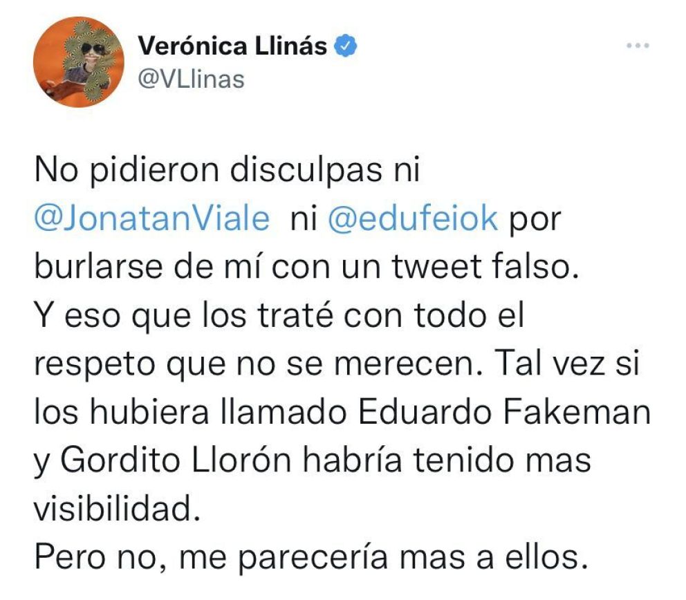 Al no recibir respuesta volvió a la carga, pero esta vez, en otro tono. "No pidieron disculpas por bularse de mí. Y eso que los traté con respeto que no se merecen. Tal vez si los hubiera llamado Fakeman y Gordito Llorón habría tenido más visibilidad", sentenció.