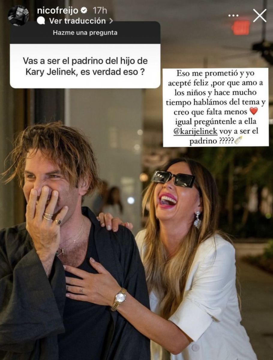 Luego de varios días de especulaciones, Karina Jelinek confirmó que tendrá un hijo a los 41 años y, Nicolás Freijo, productor e íntimo amigo suyo, será el padrino.