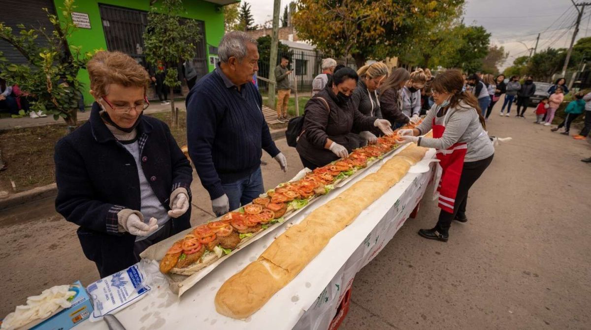 Villa Tesei: Preparan un imponente sándwich de milanesa de nueve metros de largo