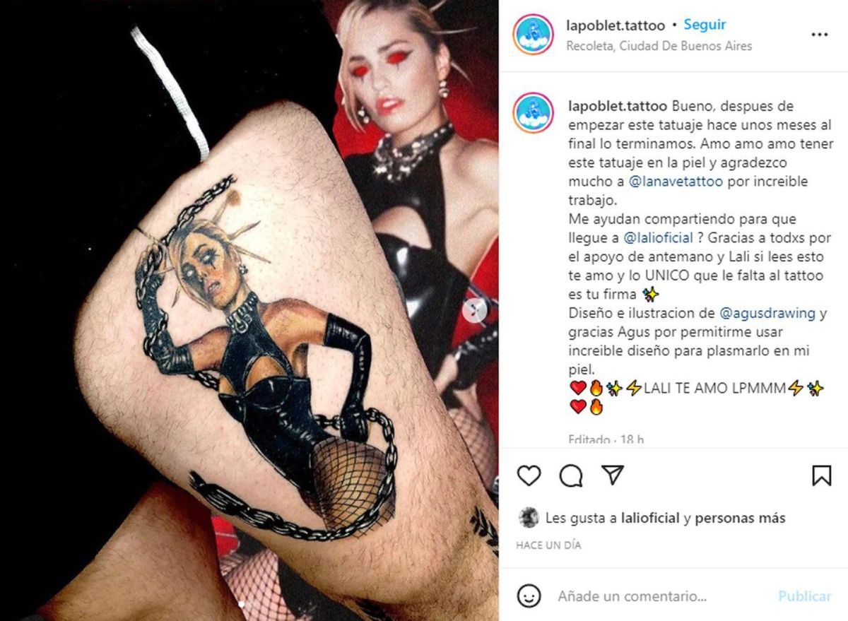 El emocionado fanático agregó que “Lali, si lees esto, te amo y lo único que le falta al tattoo es tu firma”. En poco tiempo, la publicación de Agustín Poblet se volvió tendencia.