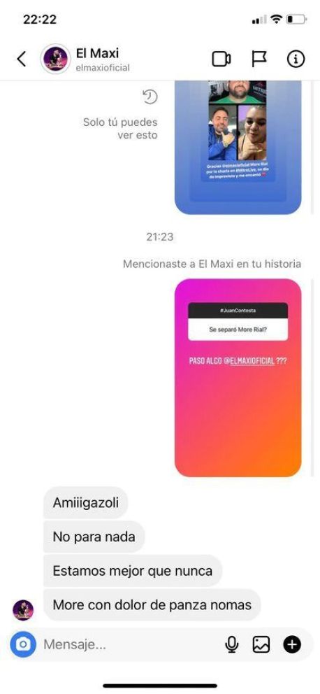 Desde su cuenta de Instagram, More Rial, no dio lugar a dudas. “Amo que muchos portales hacen un enigmático de por qué subo estados y todo. Al pedo, porque está todo bien. No tengo ningún problema con nadie. Estoy embarazada y feliz”, definió.