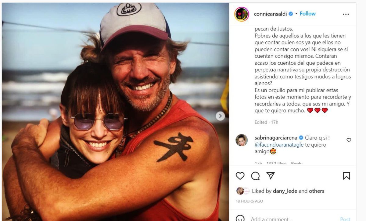 Y cerró: "Pobres de aquellos a los que les tienen que contar quien sos ¡ya que ellos no pueden contar con vos! Ni siquiera sé si cuentan consigo mismos. ¿Contarán acaso los cuentos del que padece en perpetua narrativa su propia destrucción asistiendo como testigos mudos a logros ajenos? Es un orgullo para mí publicar estas fotos en este momento para recordarte y recordarles a todos, que sos mi amigo. Y que te quiero mucho".