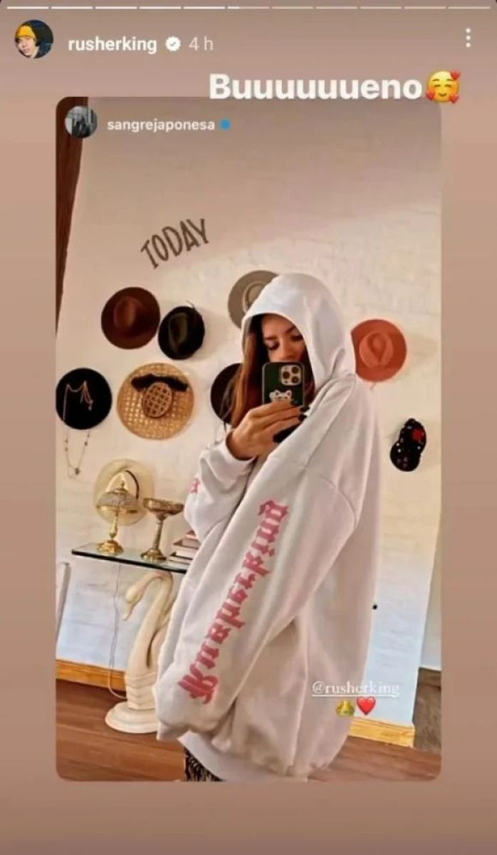 La respuesta no tardó en llegar, el cantante reposteó en su cuenta y agregó “Buuueno”, en la storie se la puede ver a la actriz luciendo un buzo blanco con un llamativo detalle.
