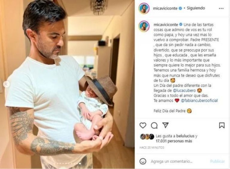 Para Fabián Cubero, este fue un día del padre muy especial, este año se sumó su primer hijo varón y el primero con Mica Viciconte. Desde su cuenta de Instagram, Mica le dedicó un especial mensaje seguido de dulces fotos de sus días como papá de Luca.