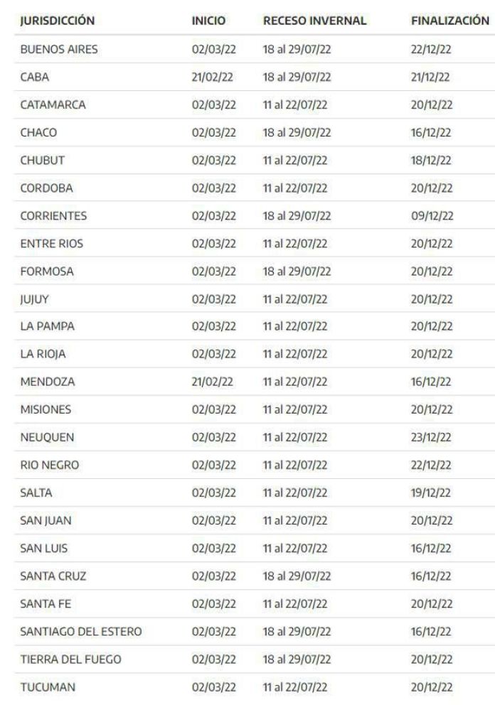 Cabe aclarar que, la fecha de las vacaciones de invierno dependen cada jurisdicción. En el caso de la Ciudad, la provincia de Buenos Aires, Chaco, Corrientes, Formosa, Santa Cruz, Santiago del Estero y Tierra del Fuego, la fecha es desde el lunes 18 de julio hasta el viernes 29 de Julio.