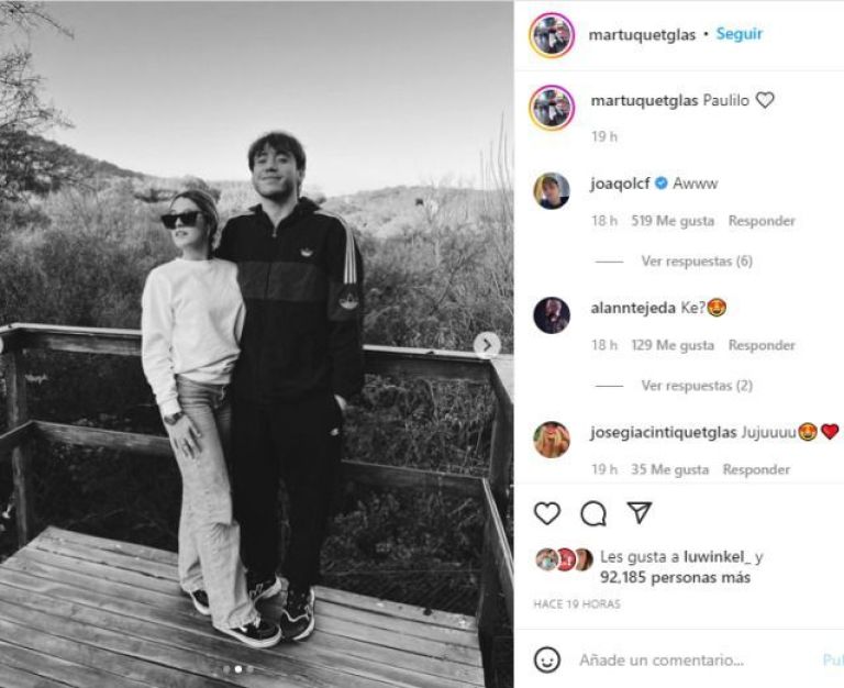 En la publicación hay tres fotos junto a la frase "Paulilo", y se observa a la pareja abrazados y muy felices en su ciudad de origen. El trapero lo reposteó en sus historias y escribió "Junticos" acompañado de un corazón.