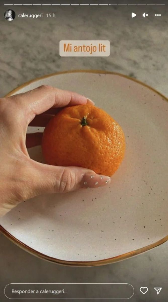Asímismo, la modelo compartió con sus seguidores a través de sus stories de Instagram, la foto de su primer antojo saludable. "Mi antojo, literal", expresó Cande junto al a imagen de una pequeña mandarina.