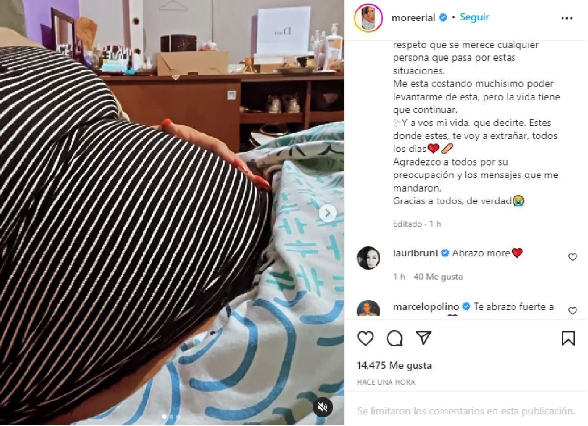 Mediante un posteo de Instagram, Morena eligió expresar lo que siente al respecto: "La perdida de un embarazo es complicado de afrontar, de sobrellevar y poder asumir, mas que nada cuando pensas que todo iba bien y de golpe todo se derrumba".