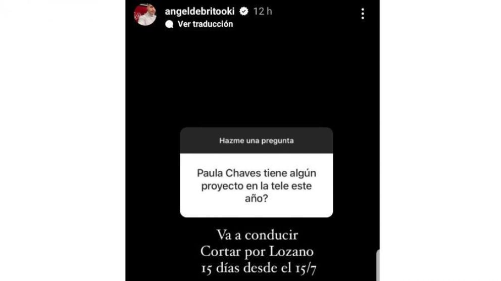La noticia la dió a conocer el periodista Ángel de Brito ya que en Instagram le preguntaron acerca de los proyectos de este año y respondió: "Va a conducir Cortá por Lozano 15 días desde el 15/7".