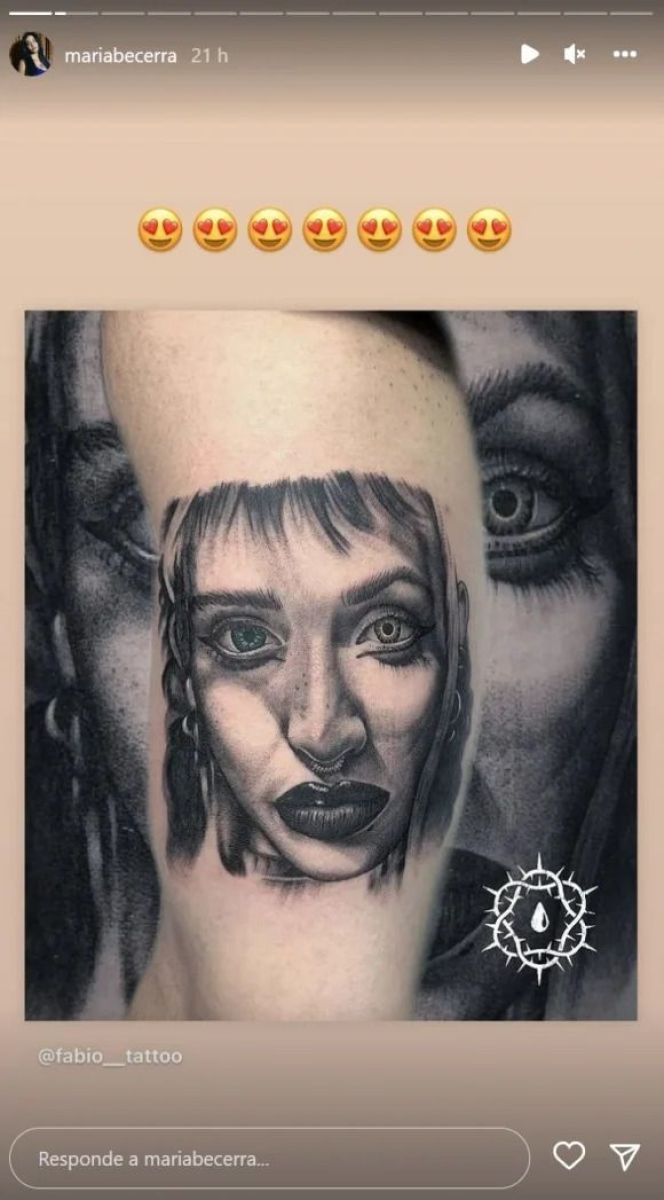 Cabe aclarar que, a María le mandaron una foto del resultado del tattoo del rostro de ella que se hizo un seguidor, en el antebrazo. La cantante no tardó en compartir la imagen a través de sus stories de Instagram,y sumarle emojis que simulan estar enamorados en señal de aprobación.