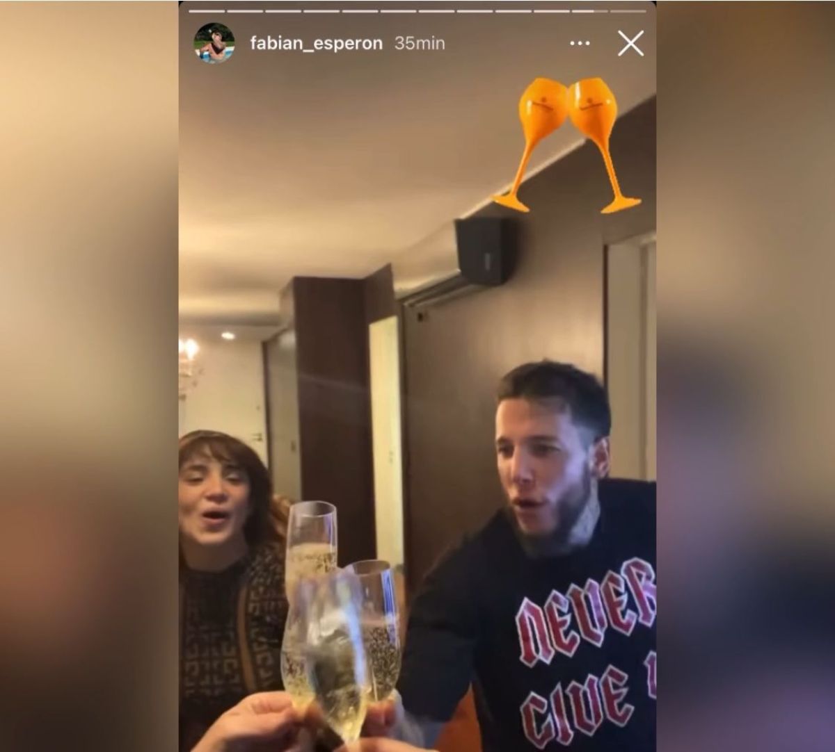 En el video, se puede observar a Caniggia muy nervioso sentado frente al televisor. Al enterarse que sus tiempos fueron mejores que los de Martín Salwe, Alex se para y sale corriendo a abrazar a su novia Melody mientras grita de felicidad. Luego fue a abrazar a su hermana Charlotte y brindó junto a ella, su novia, y su representante.