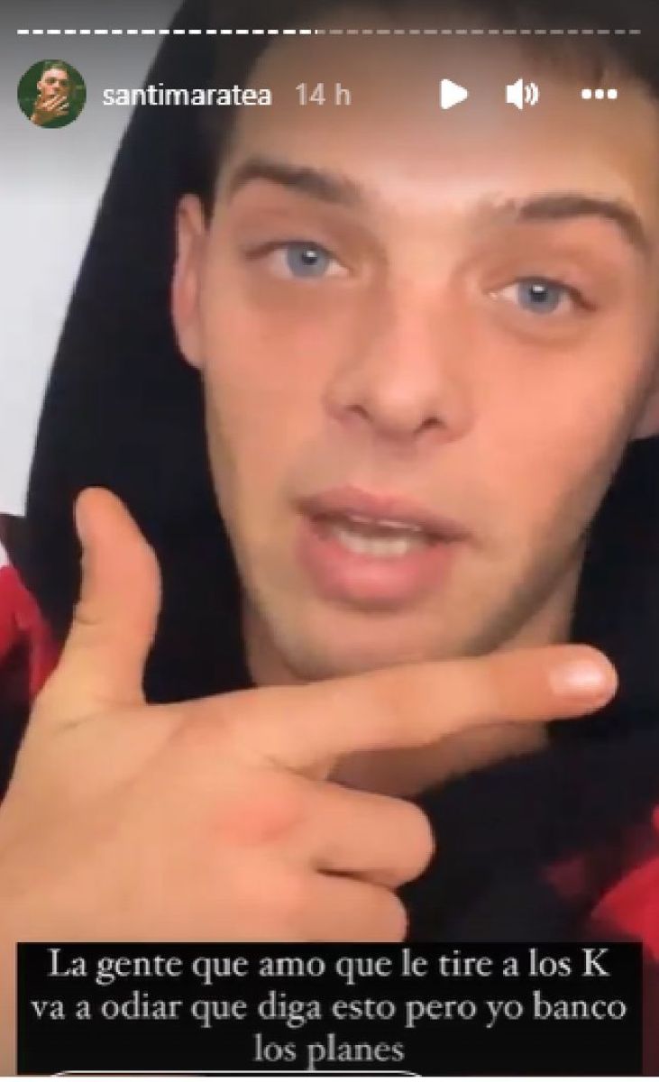 Mediante unas stories en su cuenta de Instagram, Maratea aclaró: “Voy a hablar de un video que me mandó todo el mundo: el de la señora que vive de los planes y que dice que la encanta que la gente labure y ella no laburar”. Luego subiendo el tono de voz, agregó: “Les quiero decir que yo banco los planes”.