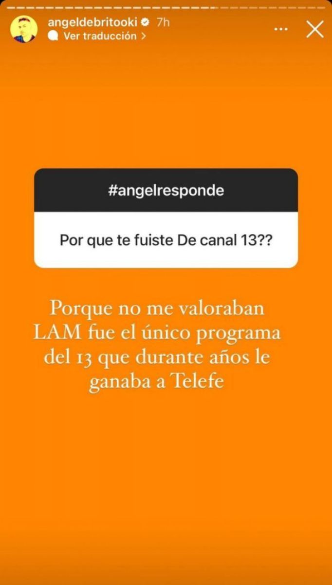 Muy directo, Ángel escribió: "Porque no me valoraban. LAM fue el único programa del 13 que durante años le ganaba a Telefe". Además, hace varias semanas que el conductor se viene quejando en Twitter de que las autoridades de Eltrece no autorizan a sus figuras a ir a LAM.