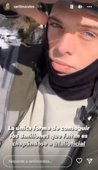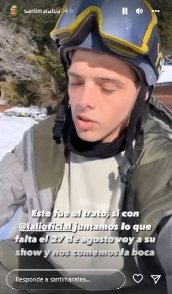 “¿Cómo vamos a conseguir los 8 millones que faltan? Chapándose a Lali”, dijo el influencer en sus historias. Luego, explicó cómo surgió la idea: “Hablé con ella y dijimos lo siguiente: ‘si, con tu fandom que son millones y millones, juntamos lo que falta, el 27 de agosto voy a su show y nos comemos la boca”.