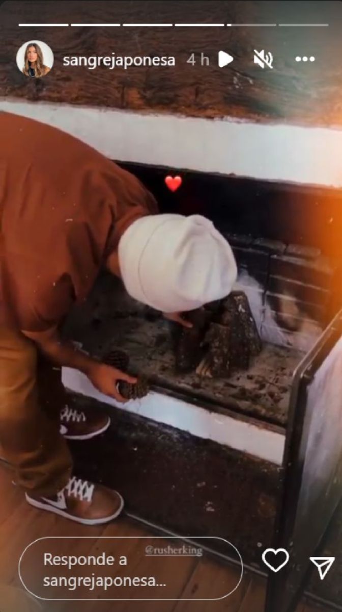 Mediante sus stories de Instagram la actriz compartió un video del trapero preparando con esmero unos leños en una chimenea, estas imágenes las acompañó solo con el emoji de un corazón, dejando en claro una vez más que su relación marcha a la perfección.