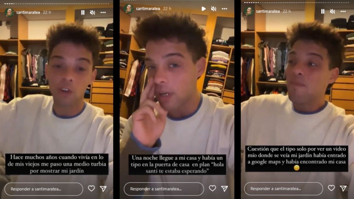 “No hago historias desde el jardín porque cuando iba a la facultad, hace 8 años, llegué una noche y me estaba esperando un tipo en plan ‘Hola Santi, te estaba esperando’”, contó el joven con sus historias de Instagram.