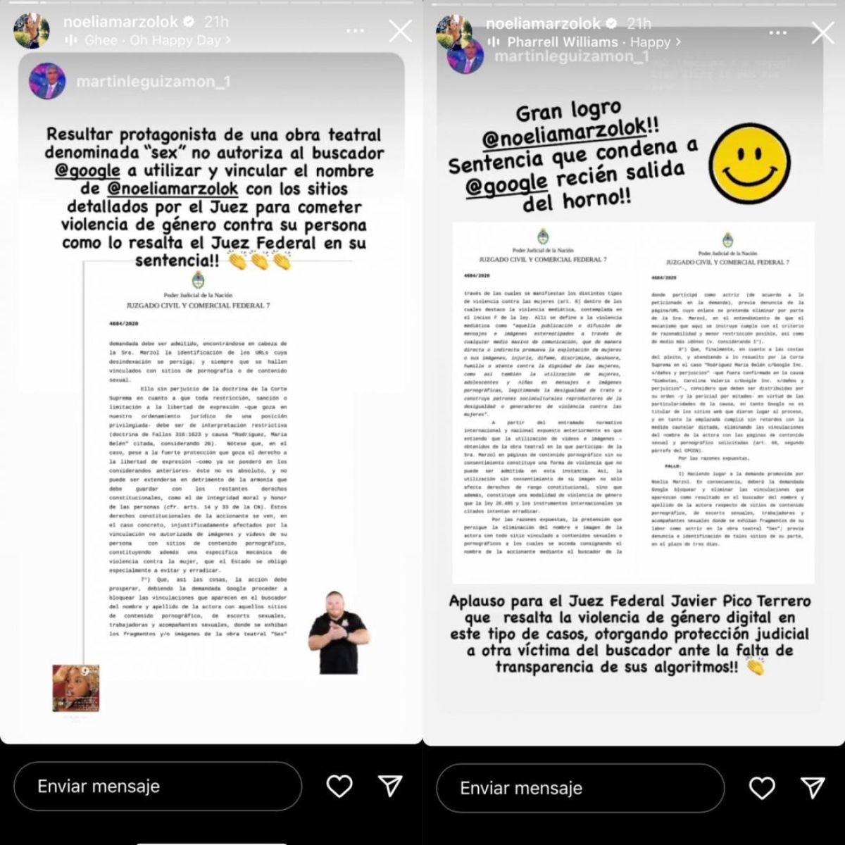 "Estoy feliz porque realmente es un gran logro. Estoy feliz con esta primera sentencia y seguimos adelante”, expresó y agradeció a su abogado y al juez de la causa.