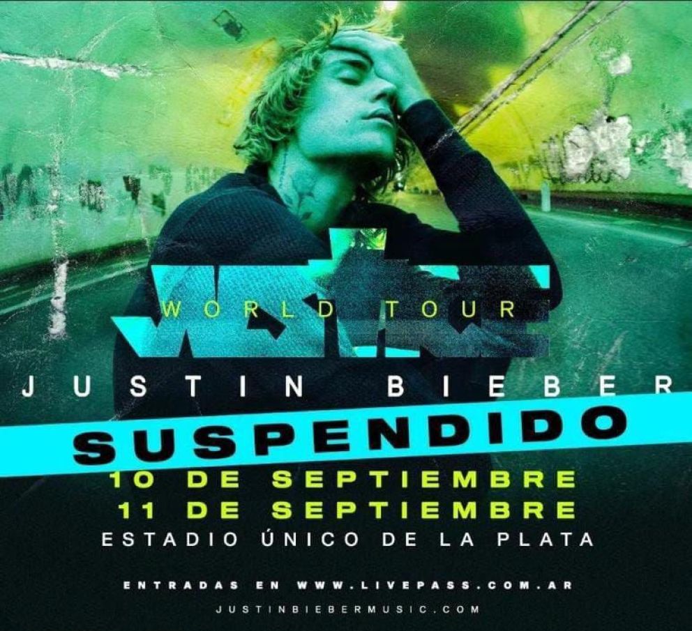 Esta noticia no caerá muy bien en los fanáticos de Justin Bieber, en el día de hoy, después de varios rumores el equipo de prensa del cantante dio a conocer que: los shows pautados para el 10 y 11 de septiembre en el Estadio Único de La Plata se suspendieron por cuestiones personales del artista.