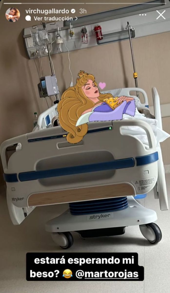 Luego de muchas historias en las cuales la panelista agradeció la preocupación e informo cómo se encontraba Martín, compartió una foto de la habitación de la clínica y enfocando a la cama pero ocultado el rostro de su marido con un sticker escribió de forma irónica: “¿Estará esperando mi beso?”.