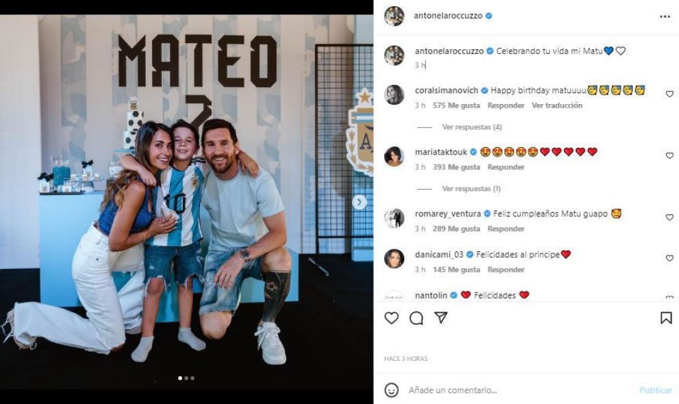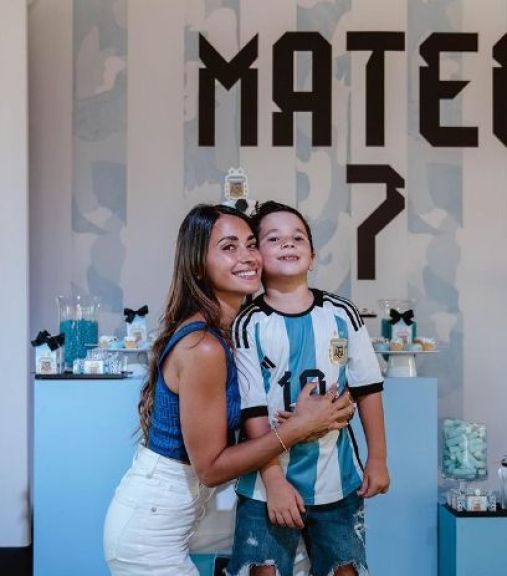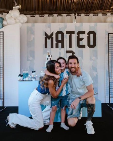 Las fotos las compartió Antonela Roccuzzo en su Instagram, en las mismas se ve al cumpleañero con sus padres y la decoración celeste y blanca en todos lados. En la publicación escribió: "Celebrando tu vida mi Matu".