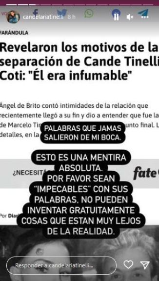 Cande Tinelli le respondió a Ángel de Brito: "Esto es una mentira absoluta”