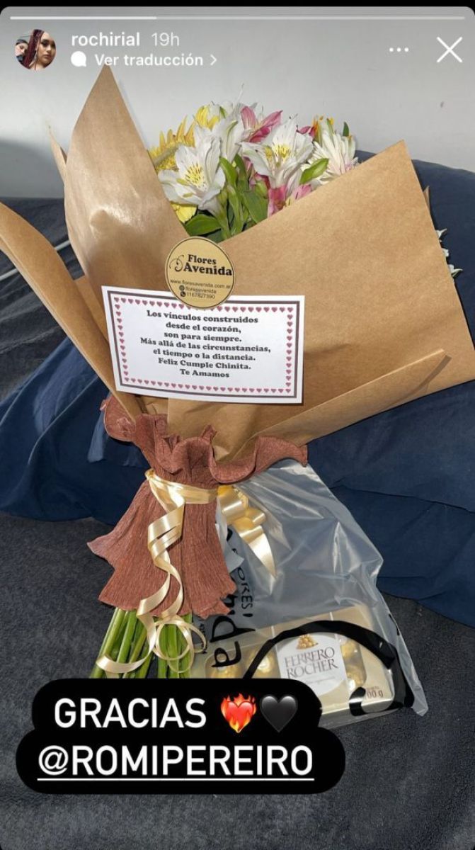Romina le envió una caja de chocolates y un enorme ramo de flores con una conmovedora tarjeta que decía: “Los vínculos construidos desde el corazón, son para siempre. Más allá de las circunstancias, el tiempo y la distancia. Feliz cumple, chinita. Te amamos".