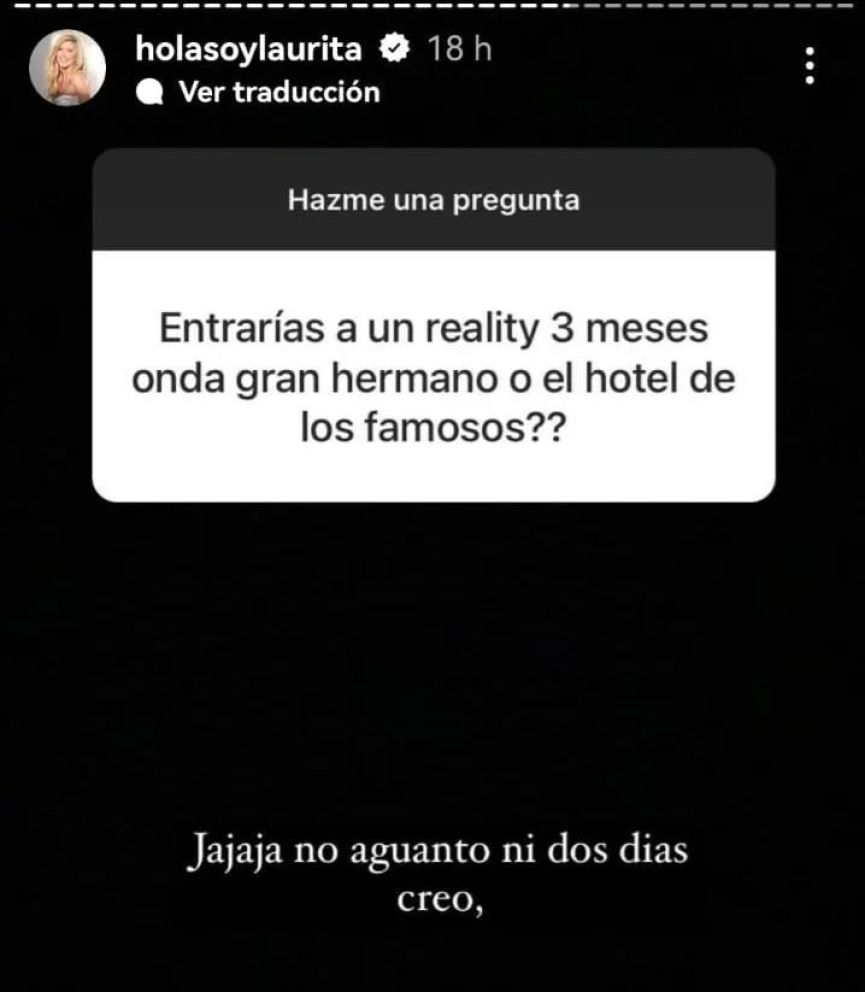 Laurita Fernández está enfocada en sus proyectos laborales, pero no descarta seguir sumando más, por lo que sus fanáticos en las redes sociales le preguntaron si participaría en un reality.