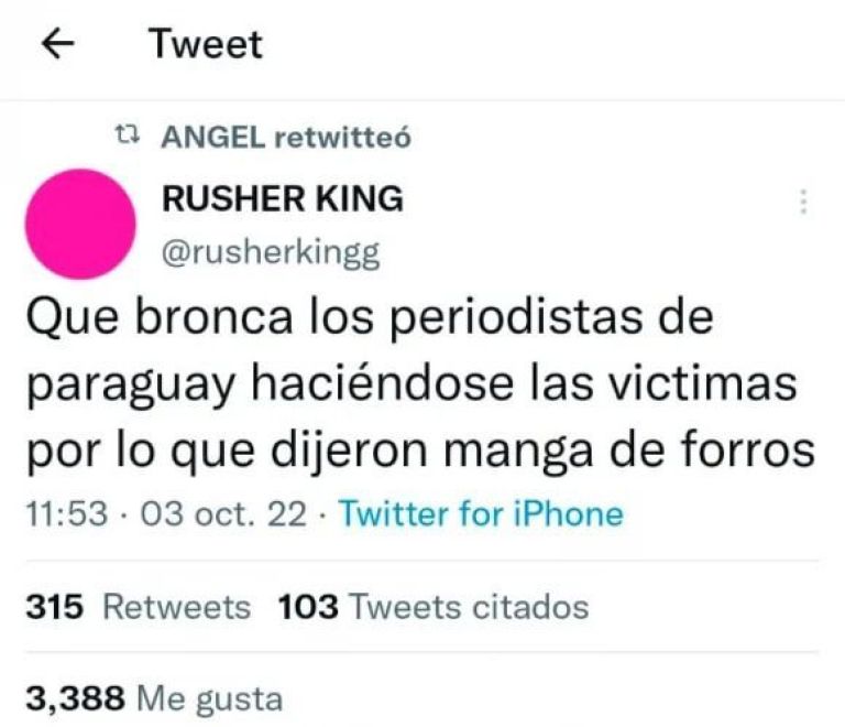 Desde su cuenta de Twitter, el cantante se hizo eco de esta situación y destrozó sin filtros a los presentadores: "Qué bronca los periodistas de Paraguay haciéndose las víctimas por lo que dijeron. Manga de forr...".