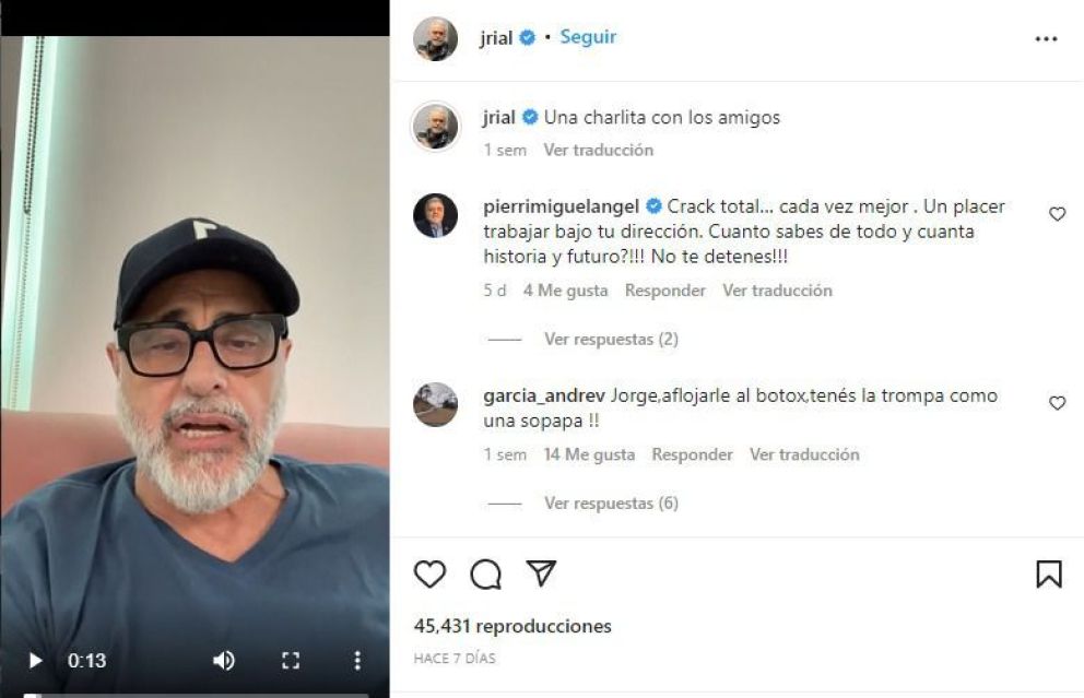 Todo comenzó porque un usuario, en un vivo de Instagram, le preguntó si le gustaría conducir esta nueva edición de “GH”, Rial señaló: “No, la verdad que no -se sinceró Rial-, y no por ignorarlo porque es un programón. Es otra generación, otra época, otro estilo y Santiago ocupa ese lugar perfecto", remarcó el conductor. A lo que añadió: "Gran Hermano necesita otro estilo que no es el mío, en su momento sí lo necesitó y anduvo bien".