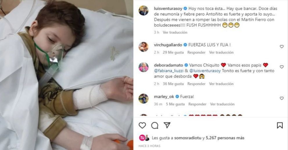 El periodista Luis Ventura informó a través de un posteo en su cuenta de instagram, que su hijo menor Antonito había sido internado por una neumonía.