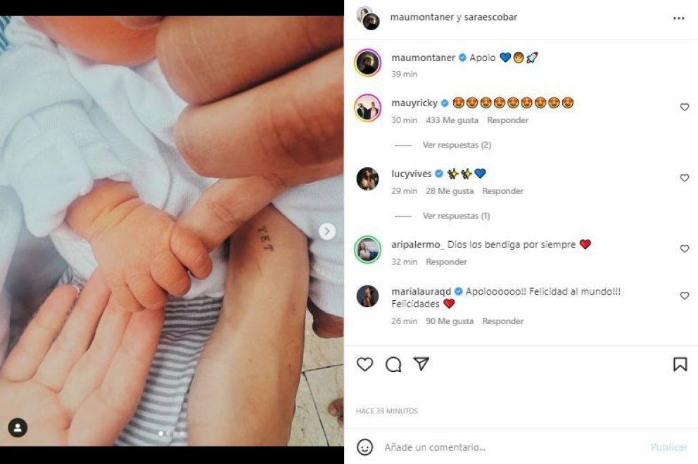 Nació Apolo, el hijo de Mau Montaner y Sara Escobar. Sus papás confirmaron la noticia en sus redes sociales, donde compartieron las primeras imágenes del recién nacido. “Apolo”, escribieron junto a emojis de un corazón celeste y un bebe.