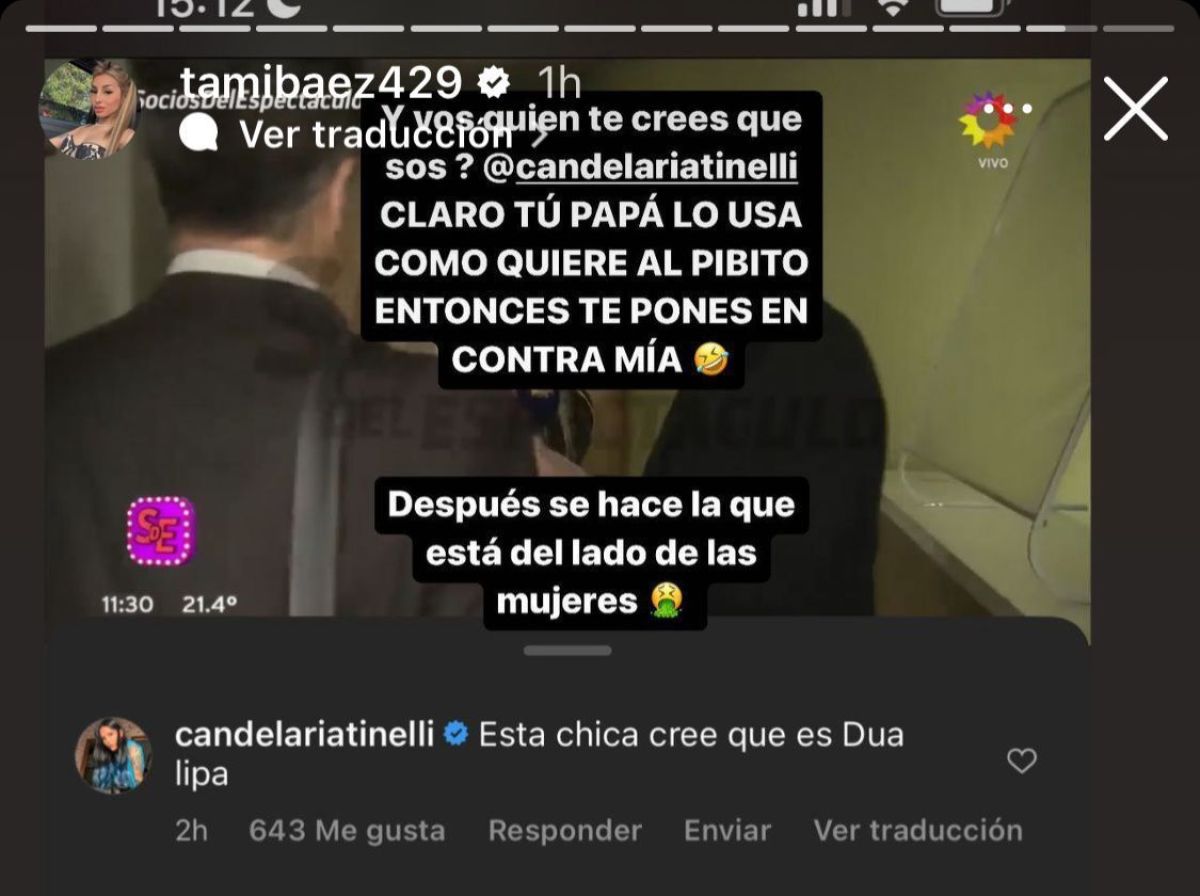 Luego de que Candelaria Tinelli hiciera un polémico comentario hacía Tamara Báez, la misma no se quedó callada y salió al cruce a través de sus historias de Instagram.