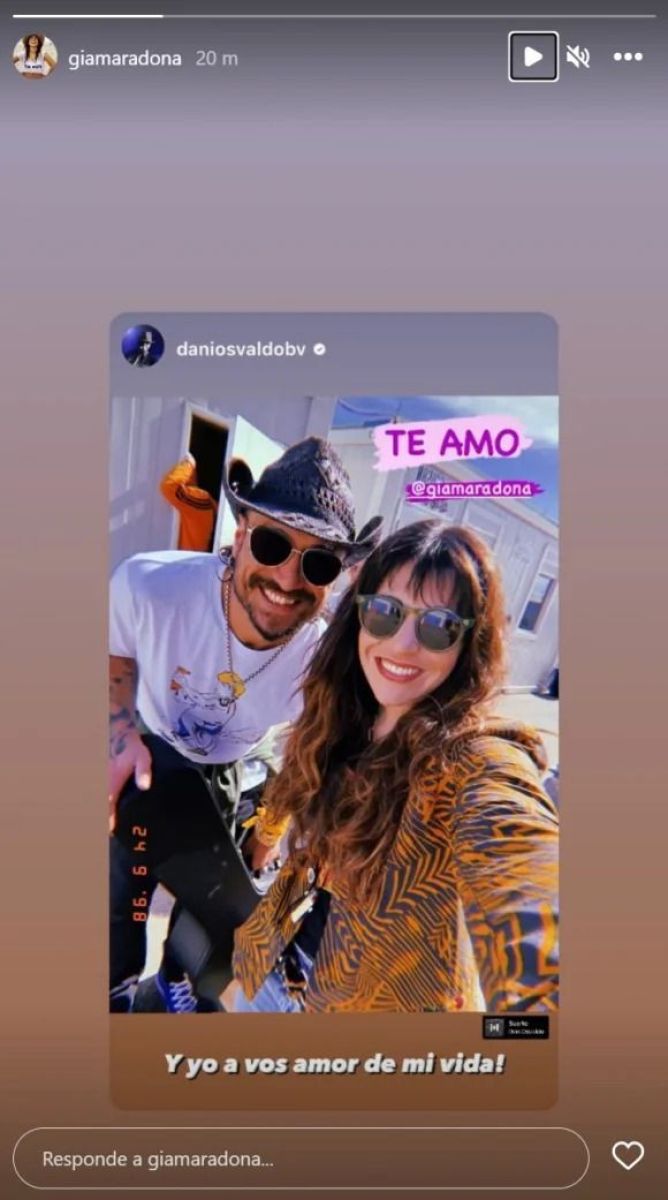 En primer lugar, Daniel compartió una selfie muy linda con Gianinna, con una linda dedicatoria: "Te amo". Entonces, ella compartió la foto y escribió: "Y yo a vos, amor de mi vida".