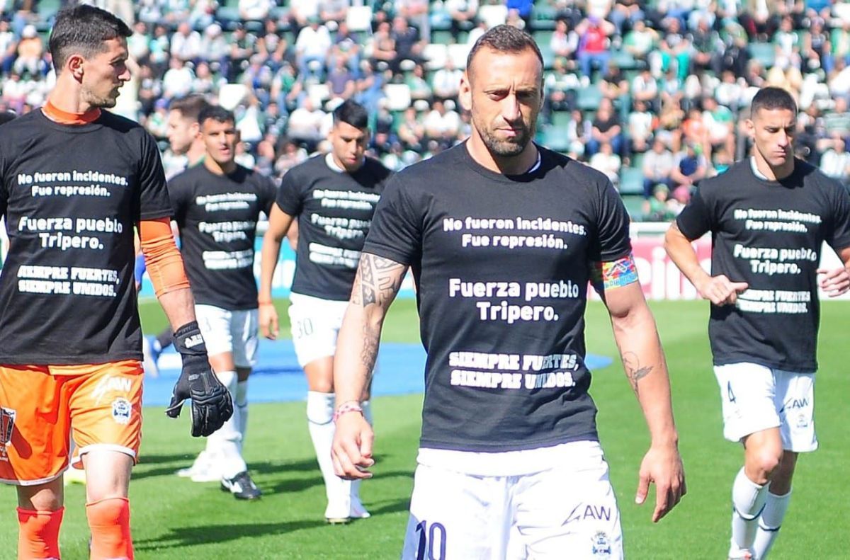 Tras la conmoción por la muerte de César Regueiro, los jugadores salieron al campo de juego con una remera especial, con un fuerte mensaje y en apoyo a los hinchas. "No fueron incidentes, fue represión. Fuerza, pueblo Tripero. Siempre fuertes, siempre unidos", fue el mensaje en la indumentaria de los futbolistas del Lobo.