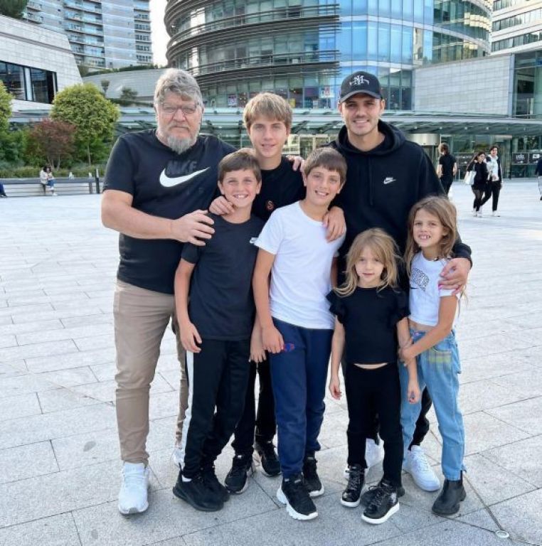 Por último, el jugador sorprendió con un tierno retrato familiar, en dónde se lo puede ver junto a Francesca e Isabella, los hijos de ella con su ex Maxi López Benedicto, Constantino y Valentino, y su papá.