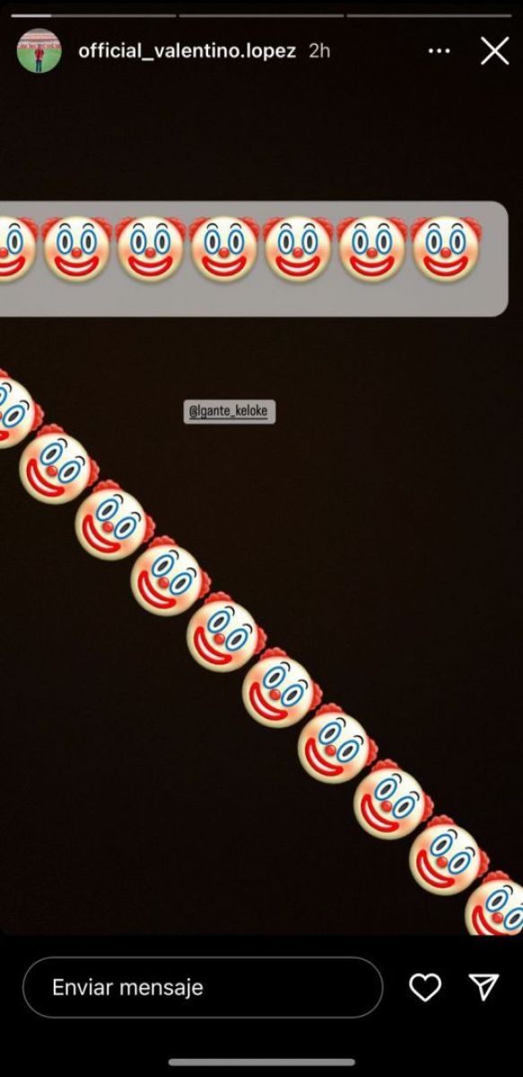 El adolescente publicó una foto que contenia un fondo negro con una gran cantidad de emojis de payasos. En la misma, etiquetó al cantante y su mensaje fue claro.