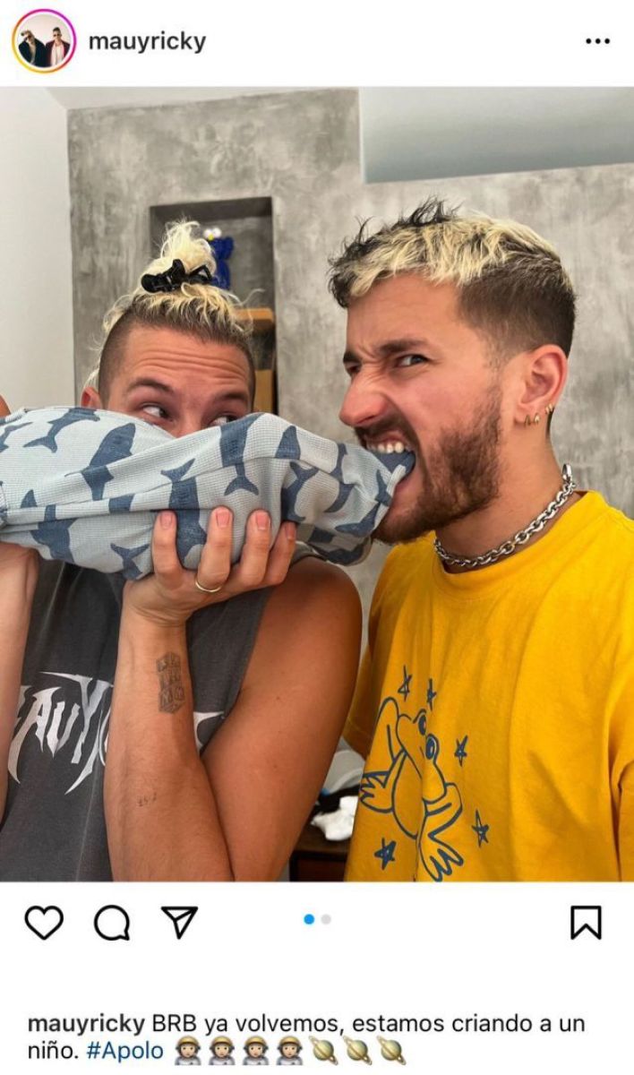En la publicación compartieron dos imágenes, la primera de ambos con Apolo en sus brazos y la segunda, con la mano del bebé sosteniendo el dedo de uno de ellos. “Ya volvemos estamos criando un niño”, escribieron.