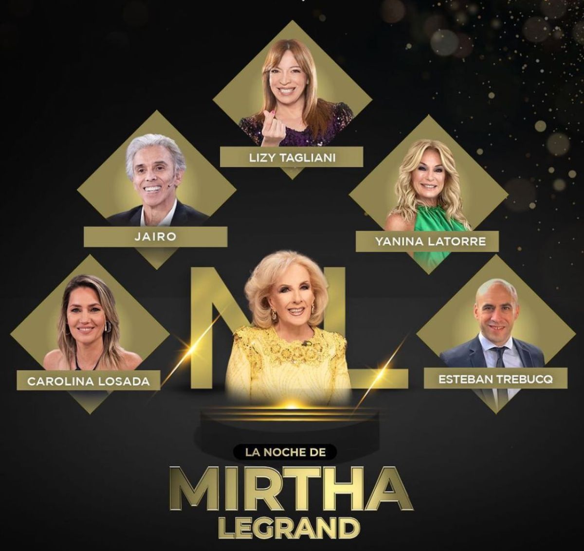 En primer lugar, para La Noche de Mirtha, el sábado 22, los invitados son: Jairo, Yanina Latorre, Lizy Tagliani, Carolina Losada y Esteban Trebucq.