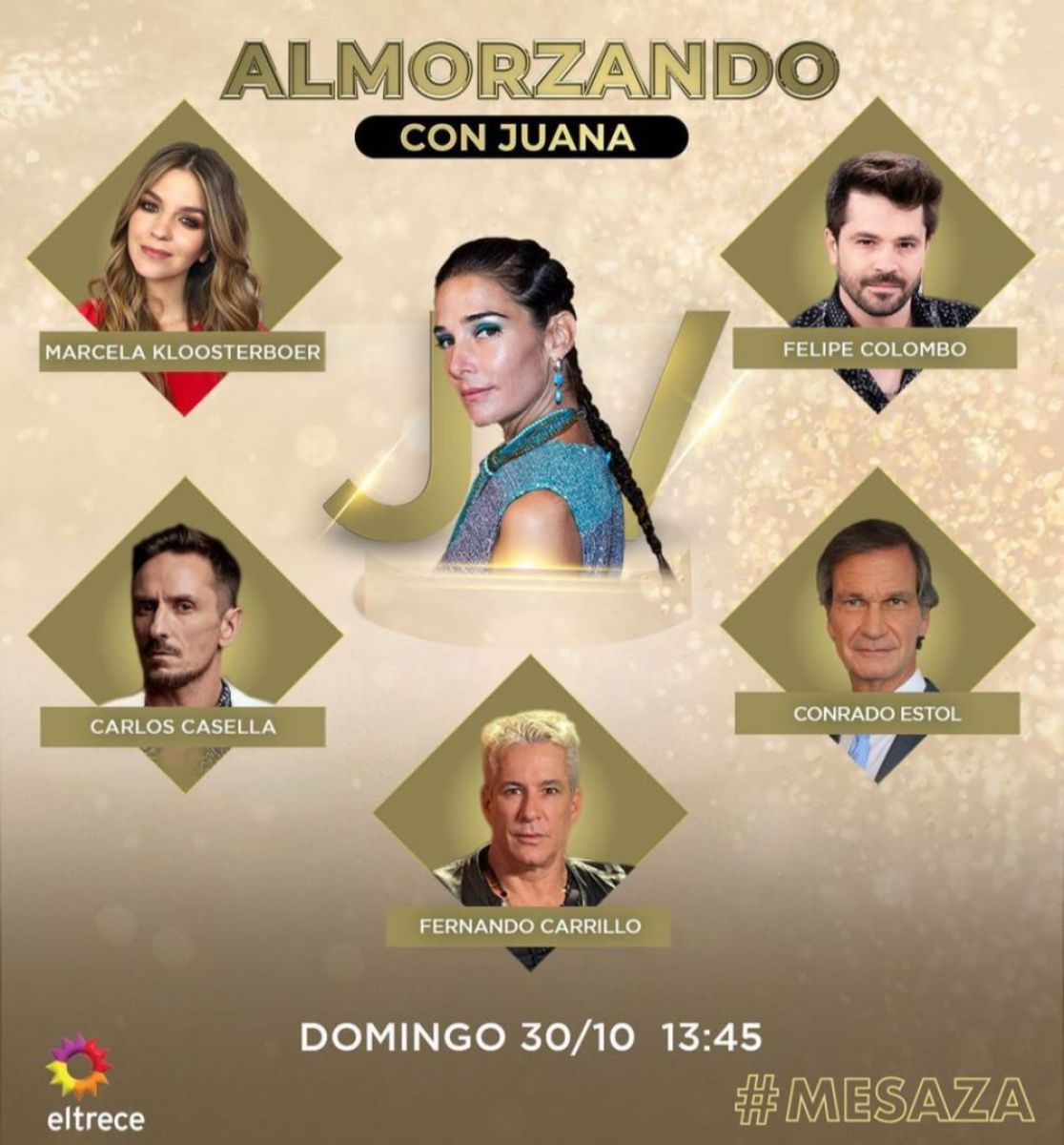 Por su parte, en Almorzando con Juana el día domingo, estarán presentes: Fernando Carrillo, Marcela Kloosterboer, Carlos Casella, Felipe Colombo y el doctor Conrado Estol.