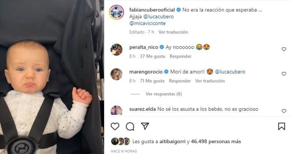Desde su cuenta de Instagram, Fabián Cubero publicó un dulce video de su hijo Luca, que contempla una reacción muy particular, en dónde se lo puede ver haciendo puchero.