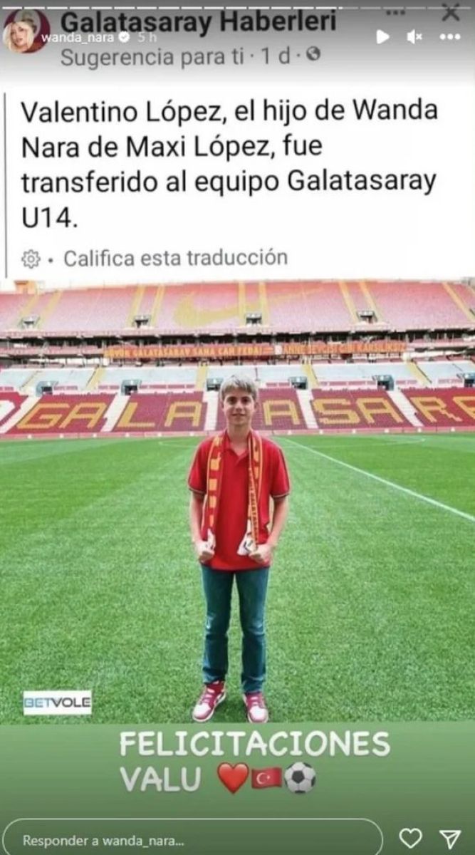 Desde su cuenta de Instagram, la empresaria reaccionó orgullosa al pase de su hijo, que formará parte del Galatasaray, el mismo equipo de su expareja, padre de sus dos nenas.